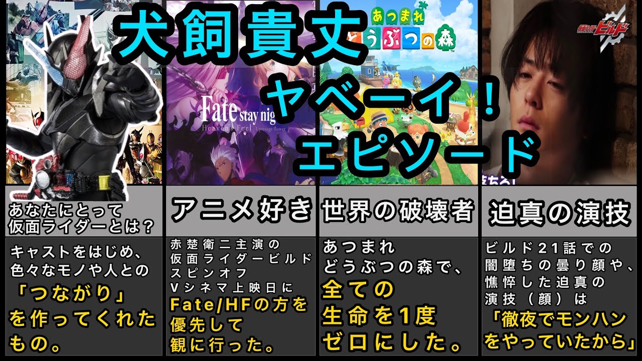 仮面ライダービルドで主演をつとめた犬飼貴丈くんのエピソードをまとめてみました!サイコうなエピソードでの皆さんのコメントも参考にさせていただきました。▼犬飼くんのサイコうなエピソードはこちら ▼仮面ライダーで共演した赤楚くんのエピソードはこちら ▼赤楚くんと犬飼くんベストマッチなエピソードはこちら new! よろしければチャンネル登録よろしくお願いします! さいこビルド仮面ライダー犬飼貴丈絶対BL