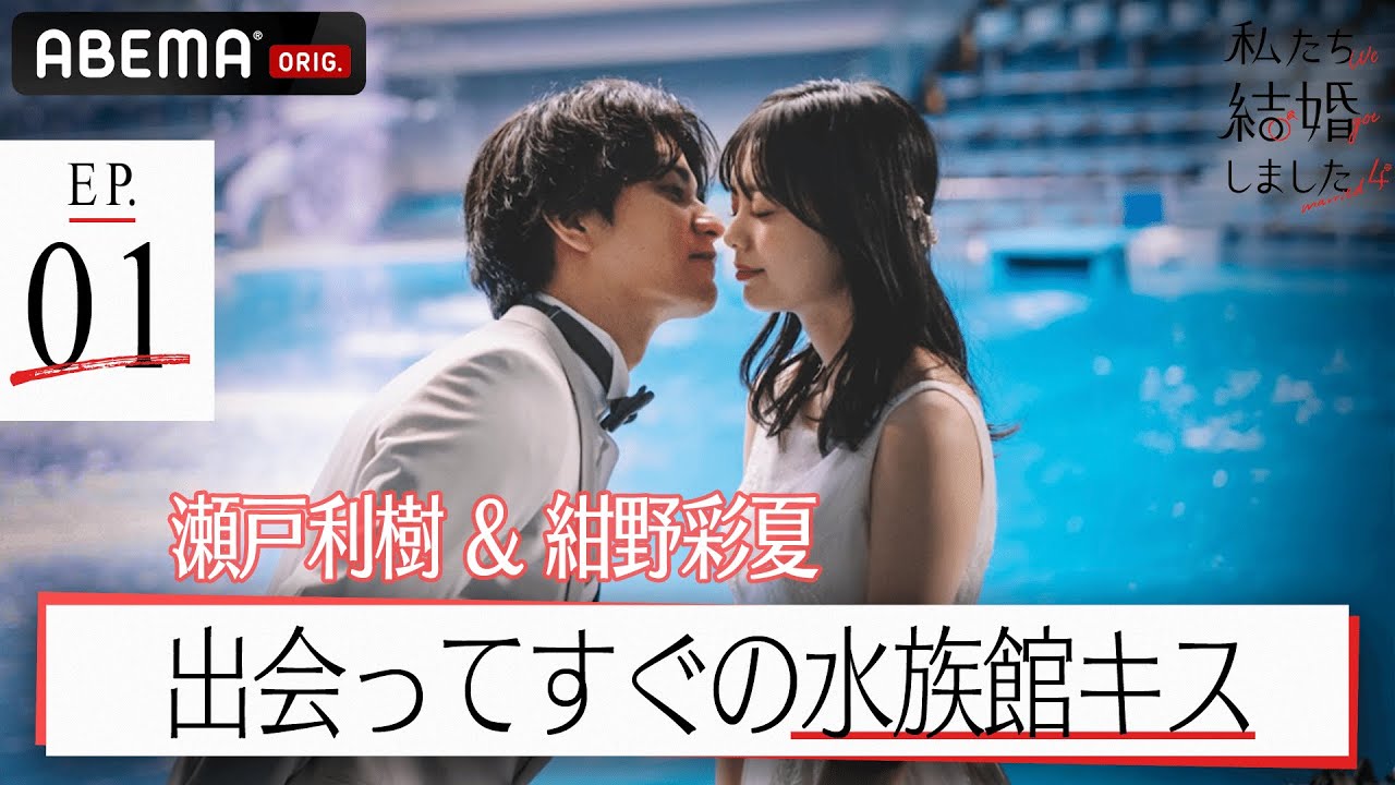 瀬戸利樹&紺野彩夏【私たち結婚しました 4💍1話】誓いのキスは水族館で…♡初対面での結婚式で夫「白い天使…!」と妻に大きな薔薇の花束を持ってプロポーズ!