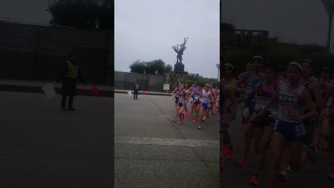 西京極競技場を出た石畳を走り抜ける女子。