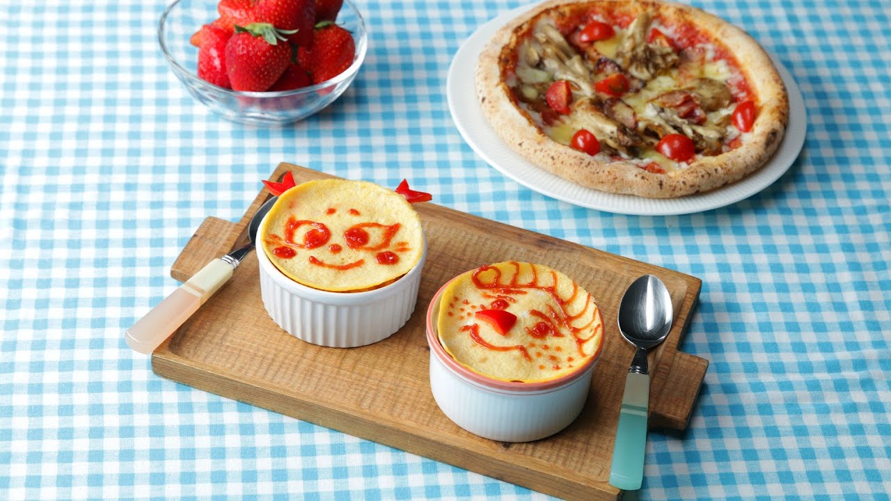 子どもたちに大人気のキャラクター、サーモンざくらとあまえびおうが・・・美味しいココットオムライスに!かわいいオムライスのお手軽レシピ♪みなさんも、ぜひお家で作ってみてください〜♪