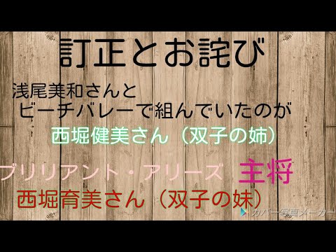 訂正があります! 浅尾美和さんとビーチバレーで組んでいたのが西堀健美さん (双子の姉妹のお姉さん)バレーボールチーム ブリリアント・アリーズさんの主将が西堀育美さん (双子の妹さん)