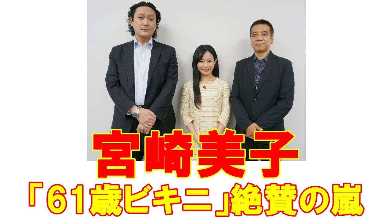 日刊大衆プレゼンツ芸能ぶっちゃけ座談会。今回は、宮崎美子のビキニ披露について。 出演は、NHKでアナウンサーを務め、フリーとなった現在では「日本一小さいアナウンサー」としても活躍している木村綾乃さん、芸能リポーターの佐々木博之氏。またメディアジャーナリストの浦憲三氏が音声のみで参加し、司会と進行をAKB48の論客として知られる芸能評論家の三杉武氏がつとめた。