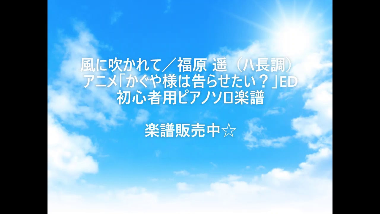 アニメ「かぐや様は告らせたい?~天才たちの恋愛頭脳戦」ED「風に吹かれて」の初心者用ピアノソロ楽譜になります。 TVサイズです。 ♯♭が一番少ないハ長調(C)で作成しております。 下記サイトにて販売中です。 Piascore iroiro譜面屋#かぐや様は告らせたい #風に吹かれて #楽譜 #ピアノ #簡単 c durEasyFukareteFukuharaharukaKaguyasamakazeniNewsscore pianosoloVideoアニメかぐや様は告らせたい天才たちの恋愛頭脳戦EDピアノ風に吹かれて福原福原遥遥ハ長調