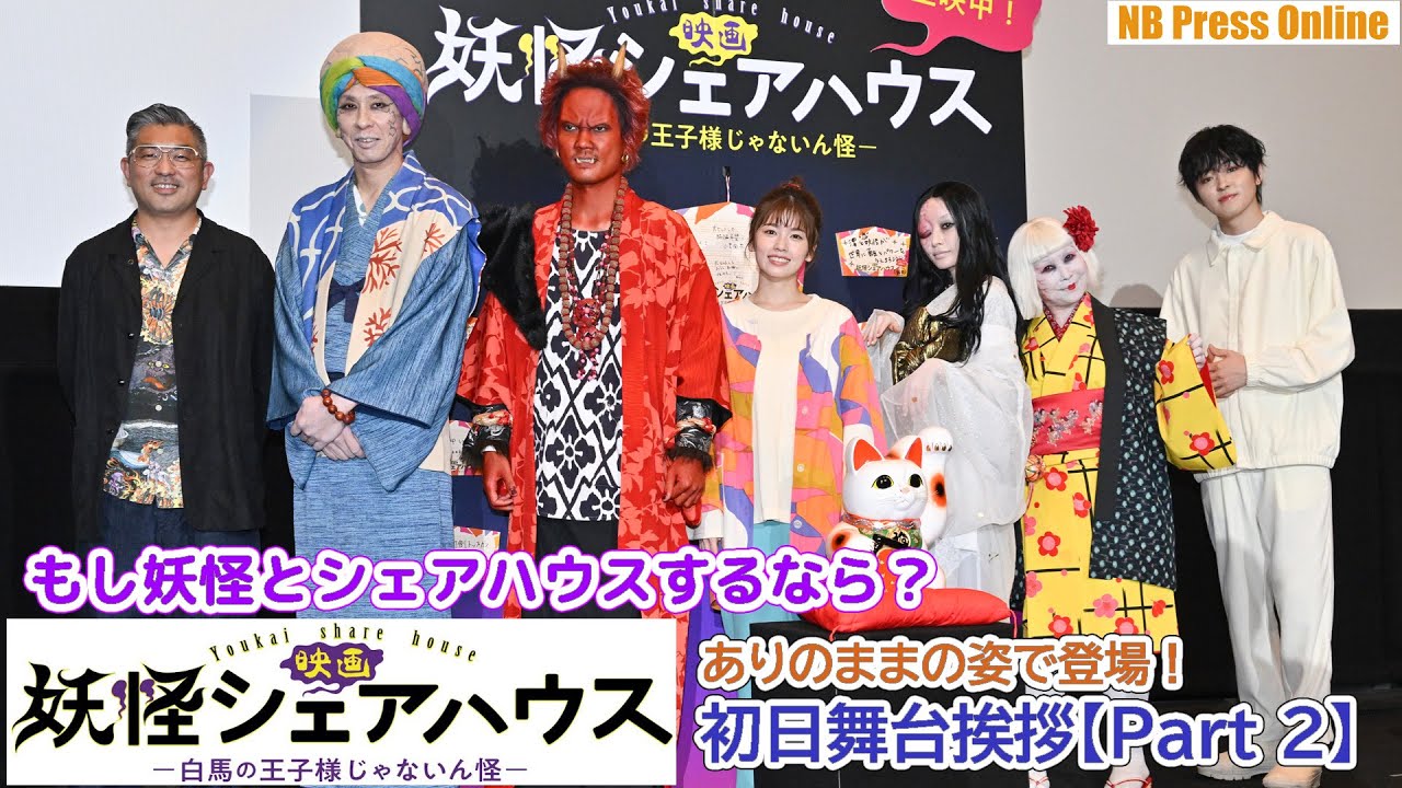 (見どころ頭出しあり)2022年6月17日、新宿バルト9にて、『映画 妖怪シェアハウス―白馬の王子様じゃないん怪―』初日舞台挨拶が行われ、小芝風花、松本まりか、毎熊克哉、池谷のぶえ、大倉孝二、望月歩、豊島圭介監督が登壇。キャストらはついに本来の妖怪の姿で登場した。