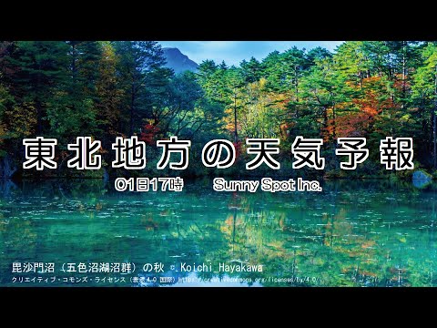 青森県は、曇りで雪の降っている所があります。1日夜は、気