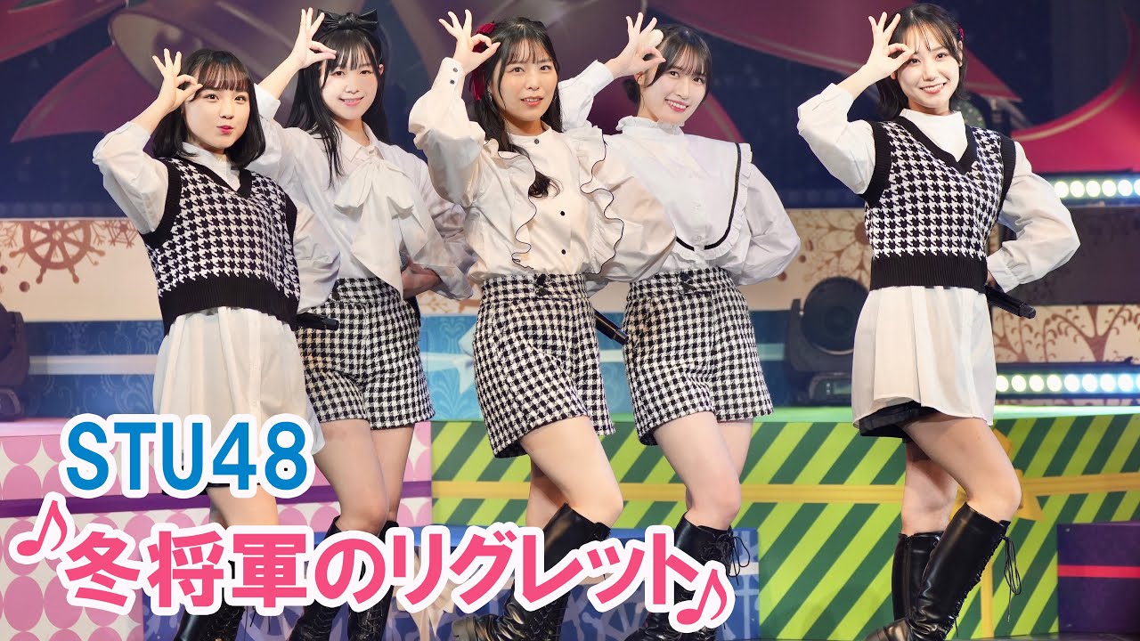 今回の動画は、2022年12月24日に開催されたSTU48 Christmas Concert 2022から「冬将軍のリグレット」のパフォーマンス映像をご紹介させていただきます。小島愛子さんセンターで、清水紗良さん、鈴木彩夏さん、田中美帆さん、兵頭葵さんによるパフォーマンスです。5人の魅力あふれるパフォーマンスをご覧ください。