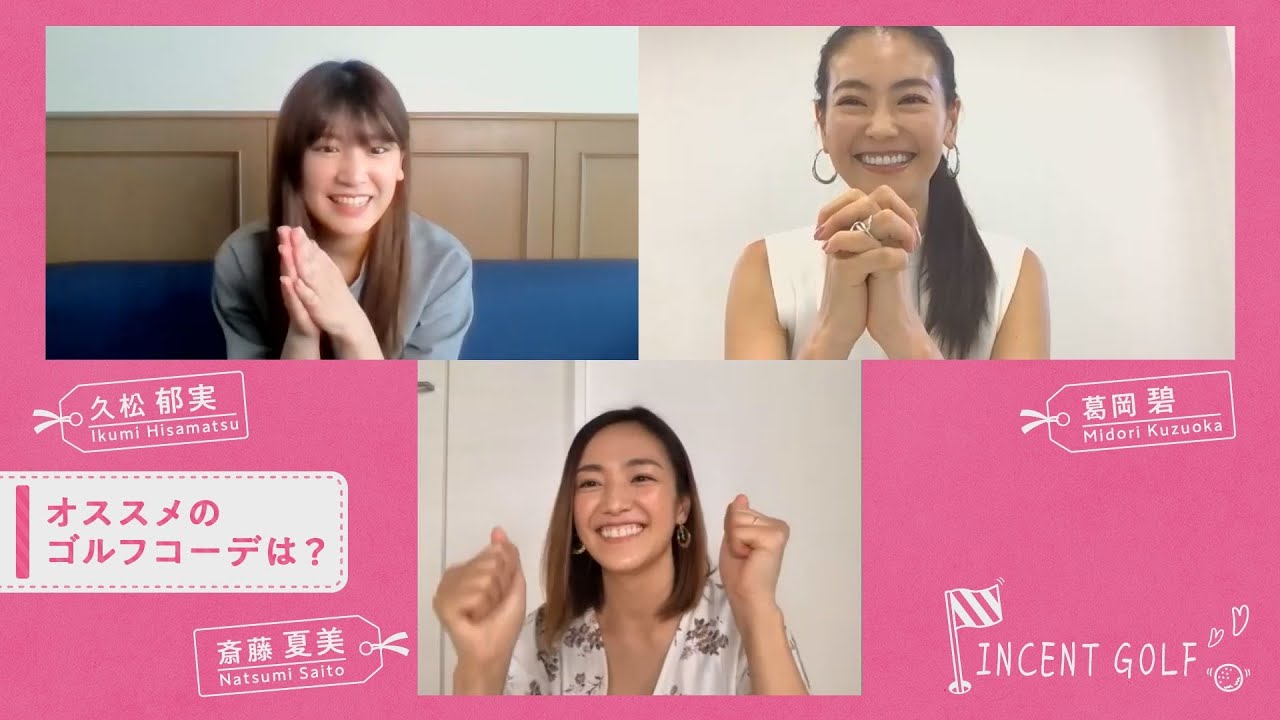 久松郁実がゴルフ好きの事務所のセンパイたち(葛岡碧&斎藤夏美)とzoomでリモートミーティング!トップモデルであるセンパイたちのオススメゴルフコーデや最近のプライベートゴルフ事情について、色々と聞いていきます!!女性ゴルファーは必見ですよ!!!