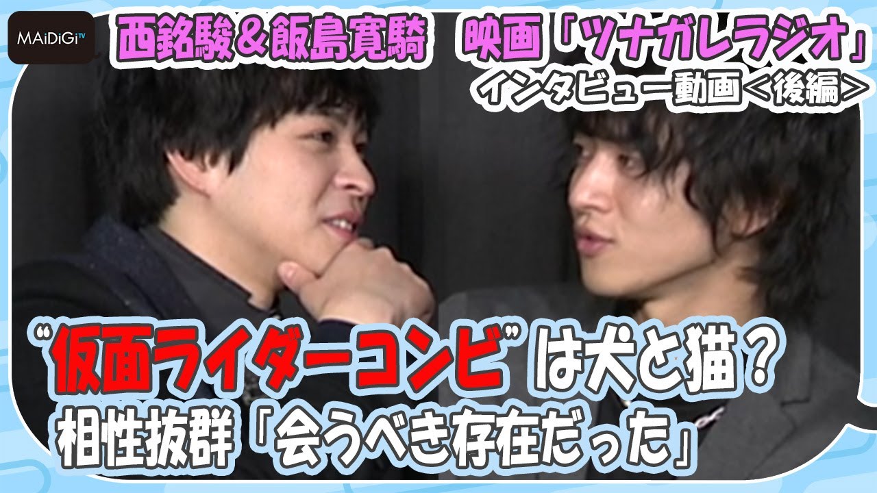 映画「ツナガレラジオ~僕らの雨降(あふり)Days~」(川野浩司監督、公開中)に出演する西銘駿さんと飯島寛騎さんのインタビュー動画の後編が2月14日、MAiDiGiTVで公開された。同じ芸能事務所に所属し、それぞれ特撮ドラマ「仮面ライダーゴースト」「仮面ライダーエグゼイド」の主演を務めるなど共通点がある2人が、お互いの印象や“つながっている”ことエピソード、映画の見どころなどを語っている。
