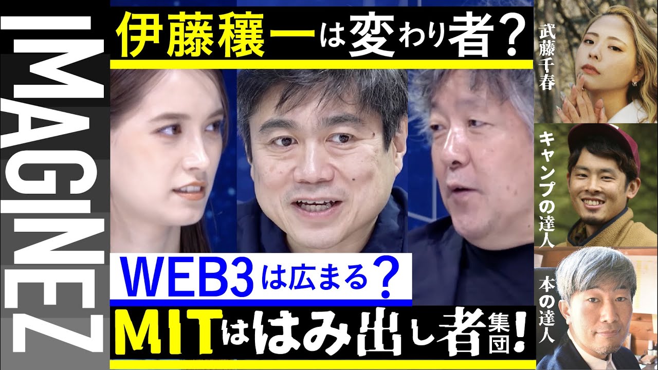 【愉快な仲間】 デジタルアーキテクトの伊藤穰一さんが登場! インターネットのフレームを決める立場の伊藤さんは 元MITラボの所長! 一体どんな人なのか?茂木さんとお互いに変人と呼び合う 仲良しが、縦横無尽に語ります 00:00 茂木トーク「日本ダメ論」 02:40 武藤千春「有言即行で生きていきたい君へ」 09:20 伊藤穰一「はみ出しものが未来を作る」 31:12 佐久間亮介「日本と海外のキャンプ事情の違い」 36:10 幅允孝「本から離れてしまった人へ」 IMAGINEZIMAGINEZ大学MITNFTWeb3アイデアイマジネイマジネ講義いまじん大学クリエイタークリエイターとその愉快な仲間たちディスカバリーチャンネルデザイントラウデン直美ブロックチェーン愉快な仲間