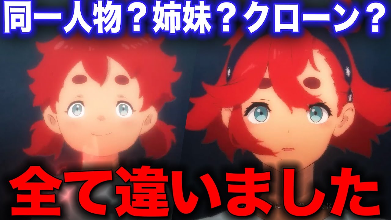 ちなみにコールドスリープがあった場合、エリクト=スレッタも可能だし、見た目も年齢も調整できるので、本作でもし存在したら万能技術になってしまうんですよね。クローン技術についても、4歳児から4歳のクローンが生み出せるなら、クローンが答えになる可能性が出てきます。でもスレッタ役の市ノ瀬さん曰く「結末はまだ誰も読み切っていないはず」だそうなので、何かあると思うのですが・・・