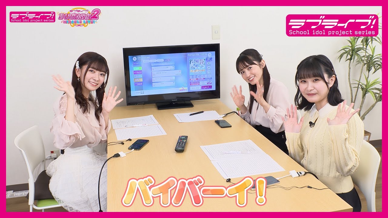 本日は、桜内梨子役 逢田梨香子、中須かすみ役 相良茉優、桜小路きな子役 鈴原希実の3人が会議している様子をお届け!