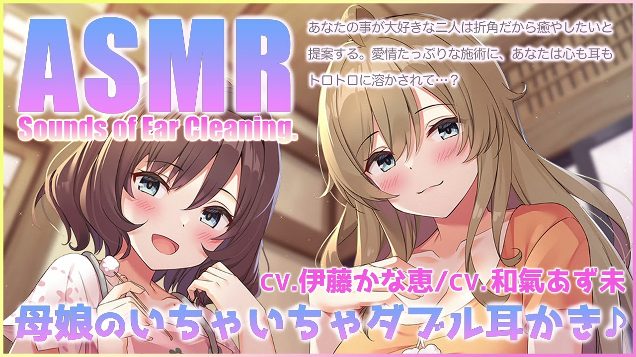新作の『180秒で君の耳を幸せにできるか?』シリーズより伊藤かな恵さんが演じる母:アマヨミちゃんと和氣あず未さんが演じる娘:ヨーコーちゃんのいちゃいちゃダブル耳かきシーンを大公開です!