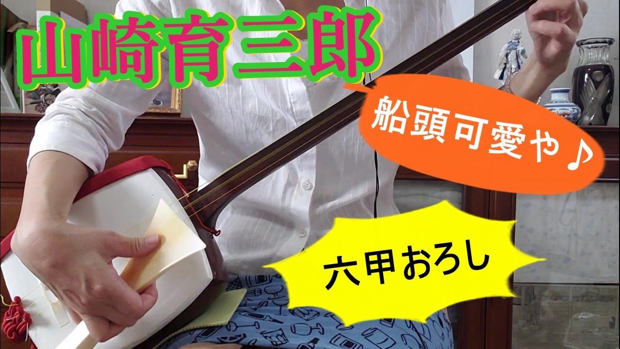 メインのドラマは、久志が裕一の会社の新人歌手オーディションを受けるかどうかでした。オペラをめざす久志は、流行歌なんてとバカにしていましたが、裕一の「たくさんの人に聞いてもらえるんだ」と言う言葉にあと押しされ。鉄男がギターを持ち、裕一が集金係で、飲み屋で流しにトライ。最初はオペラを歌って追い出されました。次の店では、なんと、「船頭可愛や」を鉄男のギターで歌ったのです。華やかな男が歌うと、また何とも言えない魅力がありました。鉄男がギターお弾いていたので、あまり複雑な手でなくて、それも流しって感じでよかった。だから、この伴奏の音を拾って、お三味線で「船頭可愛や」を弾いてみました。また、「六甲おろし」も弾いています。