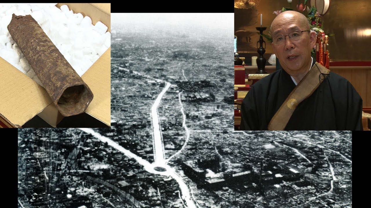 本立寺には、戦後50年目、平成7年に掘り出された焼夷弾(しょういだん)の残骸が保存されています。