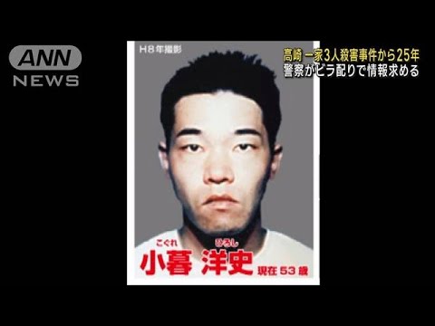 小暮洋史容疑者(53)は1998年1月、高崎市で交際を迫っていた女性の自宅に侵入し、父親の石井武夫さん(当時48)ら両親と祖母、合わせて3人を殺害した疑いが持たれ、全国に指名手配されています。