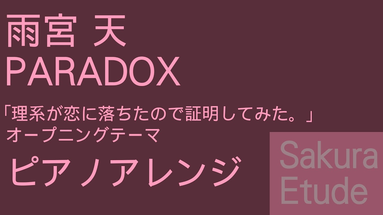 「理系が恋に落ちたので証明してみた。」のオープニングテーマ「PARADOX」のピアノアレンジです。
