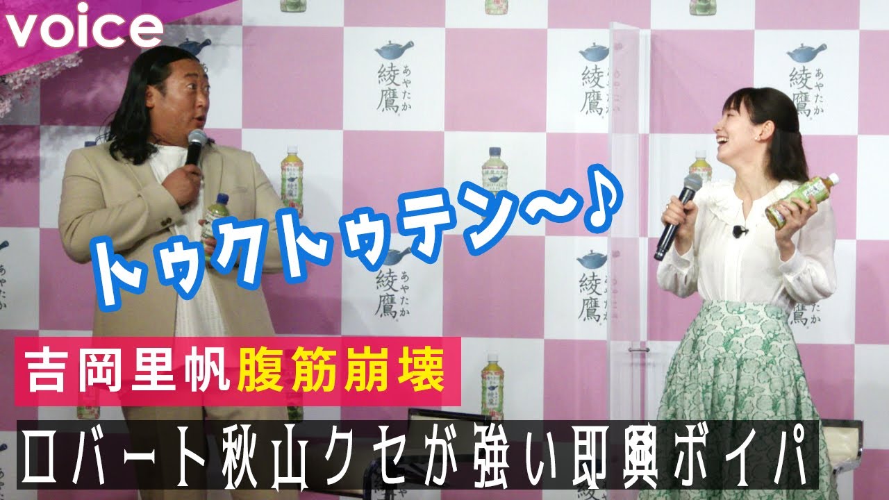吉岡里帆とロバート秋山が6日、都内で行われた日本コカ・コーラ『綾鷹 桜デザインボトル』発売記念PRイベントに出席。桜が置かれた特設ステージで一足早い春を満喫するロバート秋山は「最高ですね!」と、童謡「さくらさくら」を琴のボイパで口ずさんだ。思わぬ即興に吉岡里帆は笑いが堪えられない様子だった。#吉岡里帆 #ロバート秋山 #綾鷹 voiceヴォイスボイパロバート秋山即興取材会吉岡里帆綾鷹 桜デザインボトル面白い
