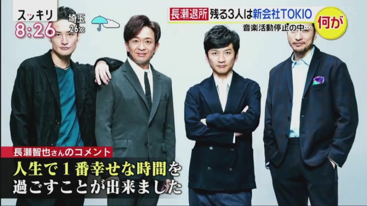 TOKIO長瀬智也(41)ジャニーズ退所発表!スッキリ 2020年7月23日 * 長瀬退所残る3人は新会社TOKIO * 長瀬決断 裏方へ転身 陰に音楽活動停止? 2020年7月23日NewsTOKIO長瀬TOKIO長瀬智也41ジャニーズ退所発表長瀬退所残る3人は新会社TOKIOVideoスッキリ