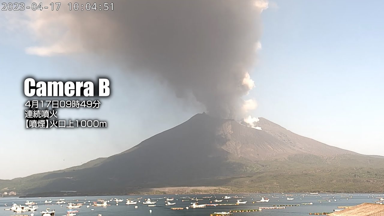 撮影日時: 2023年4月17日 4月17日 09時49分 噴火 噴煙高度火口上1000m ~09時55分 噴火 噴煙高度火口上1500m CameraB再生 ~02:50 CameraA再生 ~05:02 CameraC再生 ~08:23 / Recording: Apr 17, 2023 09:49(JPT) 1000m / #桜島 #鹿児島 #volcano #Japan Active Volcanojapankagoshimalive camsakurajimaVolcano噴火噴煙垂水市景観桜島桜島噴火活火山火山鹿児島県