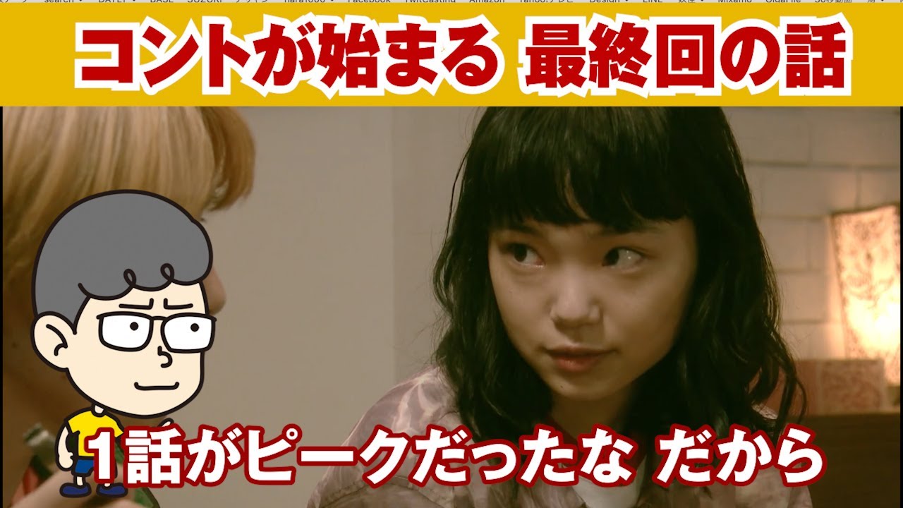 前半は、やついフェスの話。でコントが始まるの最終回。綺麗にもどっていきましたね。最終回をみてからまた1話を見ると、これ1話目がピークだわマジで。公式のダイジェストあるんでぜひ。