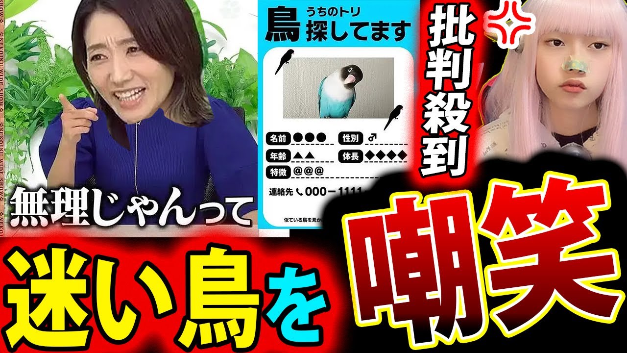 #眞鍋かをり 迷子の鳥 を 探すチラシに「無理じゃん?」で批判殺到 炎上【真鍋かおり 迷い鳥 ネコいぬワイドショー】