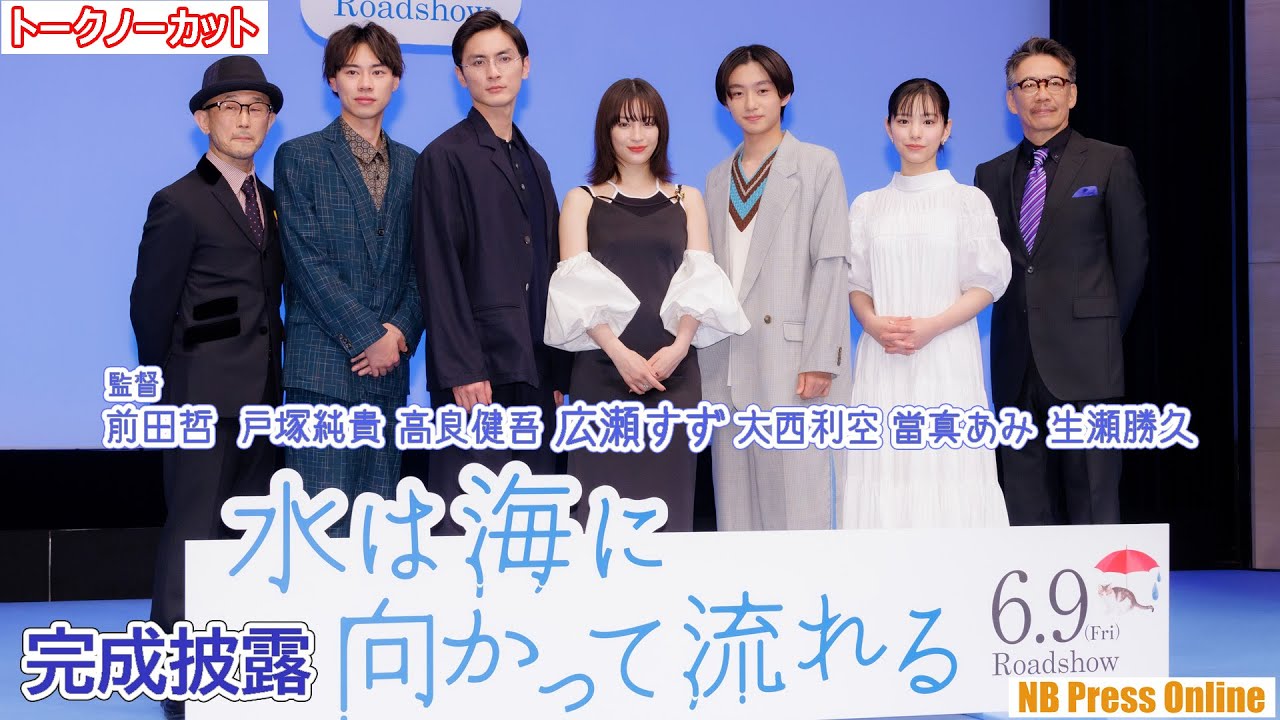 (見どころ頭出しあり)2023年5月10日、有楽町朝日ホールにて、映画『水は海に向かって流れる』完成披露試写会が行われ、広瀬すず、大西利空、高良健吾、戸塚純貴、當真あみ、生瀬勝久、前田哲監督が登壇。撮影を振り返ったほか、本作にちなんで、「一生●●しない」と思ったこと、「最近スッキリしたこと」、「最近ときめいたこと」などをそれぞれ明かした。