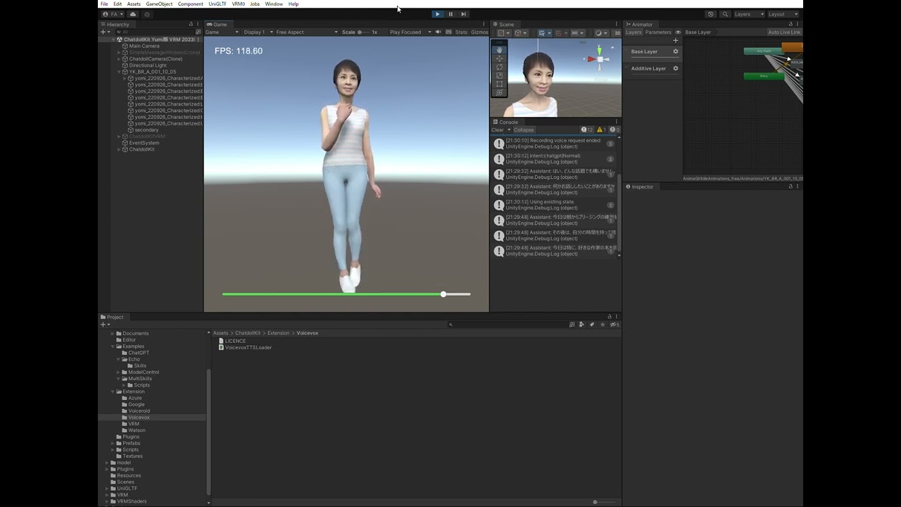 バーチャル化した由美かおるモデルと、AI を利用して会話しています。