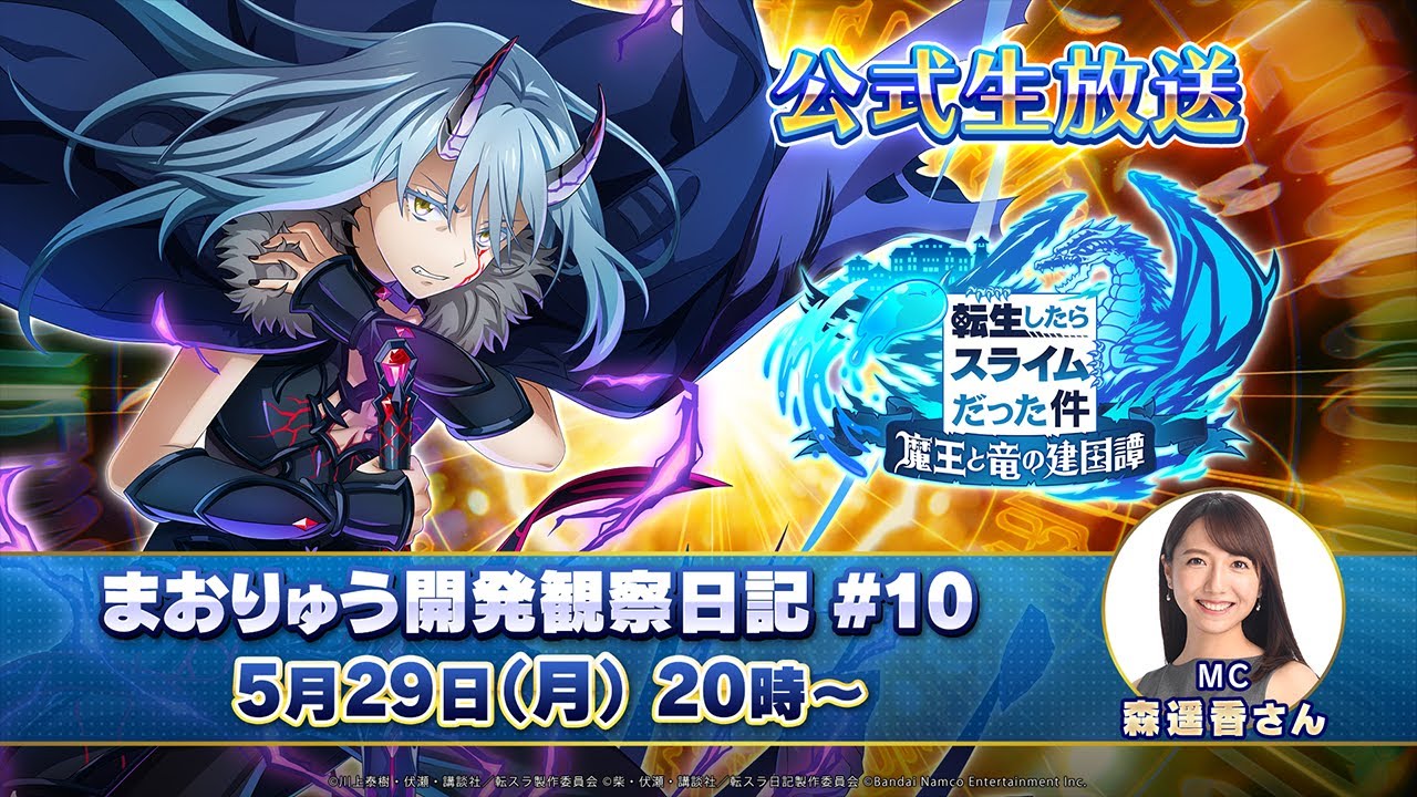 『転生したらスライムだった件 魔王と竜の建国譚』公式生放送、まおりゅう開発観察日記第10回! 今回の放送はMCの森さんと開発スタッフの3名で、6月のイベント情報などをお送りいたします!※番組内容や放送日時は変更になる場合があります。©川上泰樹・伏瀬・講談社/転スラ製作委員会 ©柴・伏瀬・講談社/転スラ日記製作委員会 ©Bandai Namco Entertainment Inc. #転スラ #まおりゅう 876876TVbandainamcoBANNAMBNETenSuraバンダイナムコバンダイナムコエンターテインメントバンナムバンナムTVまおりゅう転スラ転生したらスライムだった件 転スラ日記