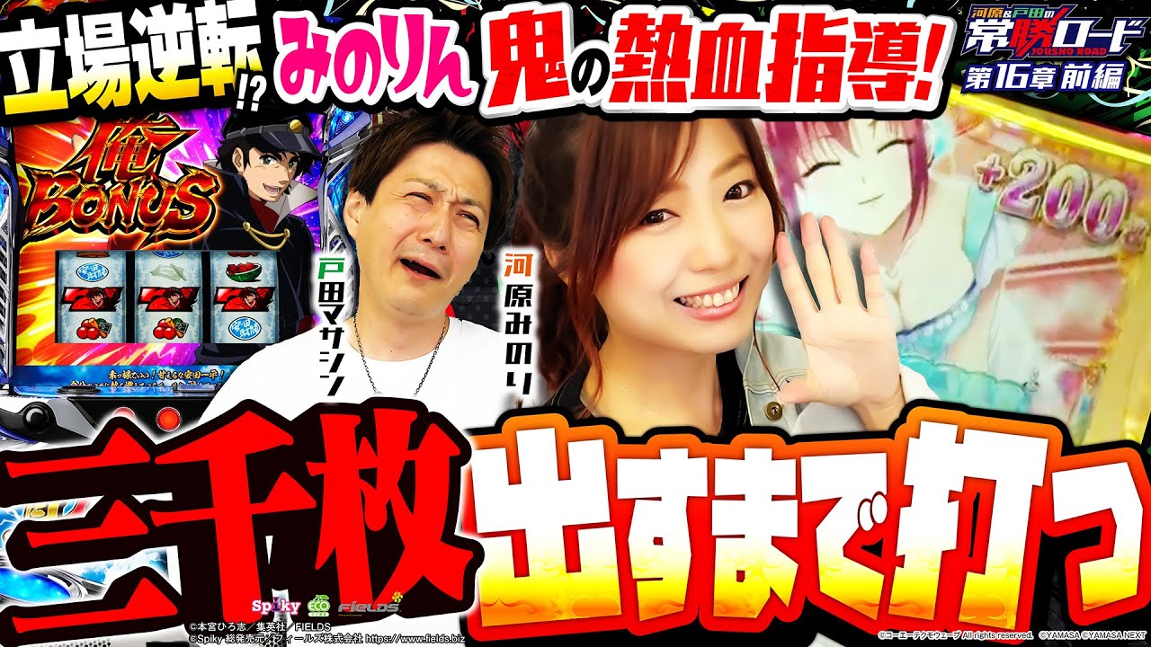 前回の対決企画で見事勝利を飾った河原が先生となり、ガチ勢の戸田にエンジョイパチスロの楽しみ方&勝ち方を伝授するという、立場逆転の特別回がスタート!