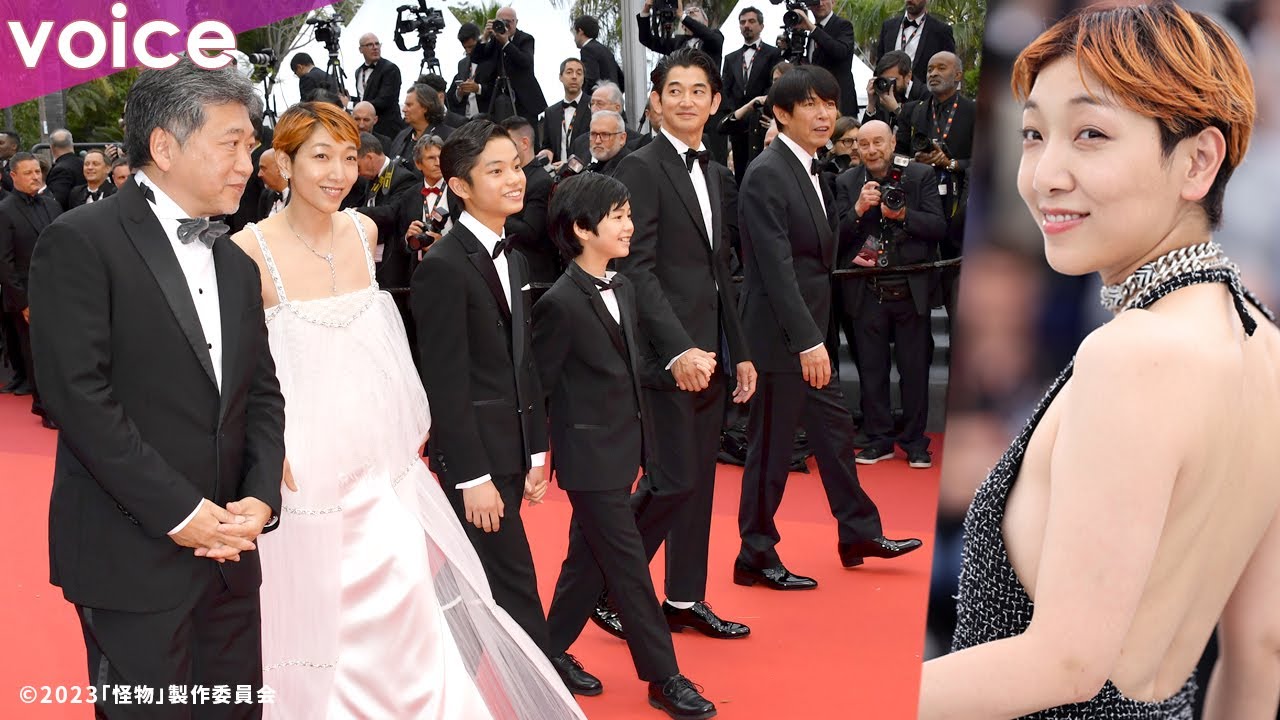 『第76回カンヌ国際映画祭』コンペティション部門に正式出品された『怪物』(6月2日公開)の是枝裕和監督、脚本家の坂元裕二氏、安藤サクラ、永山瑛太、黒川想矢、柊木陽太が、同映画祭のレッドカーペットを歩いた。更にメディアのフォトコールに応じた。安藤サクラは背中が大きく開いたドレス姿で魅了した。