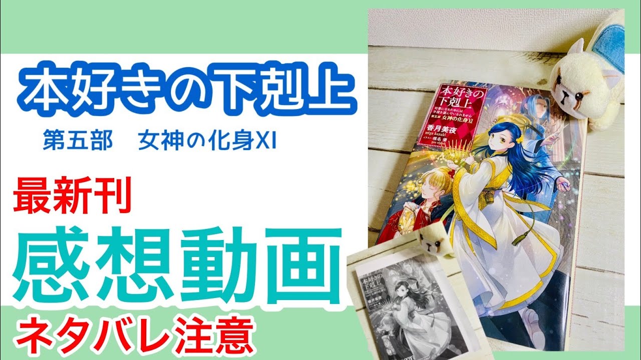 本好きの下剋上の第五部女神の化身Ⅺについての感想動画です。 あくまで一個人の感想なので、そんな人もいるんだ〜という暖かい目で見ていただけると助かります☺️ 今回は本編、書き下ろし、TOブックス購入特典SSついて話しています。 ※ドラマCDについてはデータを誤って削除してしまったのでありません😭 いつも公式から新作が出るのを楽しみにしているので、また気が向いたら他のコミカライズやその他の本の感想などもあげたいと思います。 Ascendance of a Bookworm本好きの下剋上本好きの下剋上 司書になるためには手段を選んでられません 第3部
