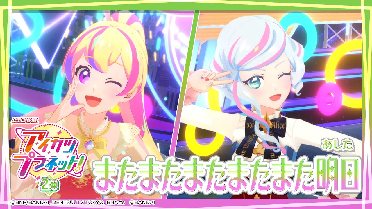 データカードダス アイカツプラネット!2弾 好評稼働中! 『またまたまたまたまた明日』 作詞・作曲・編曲:佐伯youthK うた:舞桜・栞 from STARRY PLANET☆振付:株式会社ソリッド・キューブ (明香里) DCDMVPVSTARRY PLANET☆アイカツ!アイカツオンパレード!アイカツスターズ!アイカツプラネット!アイカツフレンズ!アイドルアニメゲームしおりデータカードダスハナミュージックビデオ伊達花彩女児本谷栞渡邊璃音音楽音羽舞桜