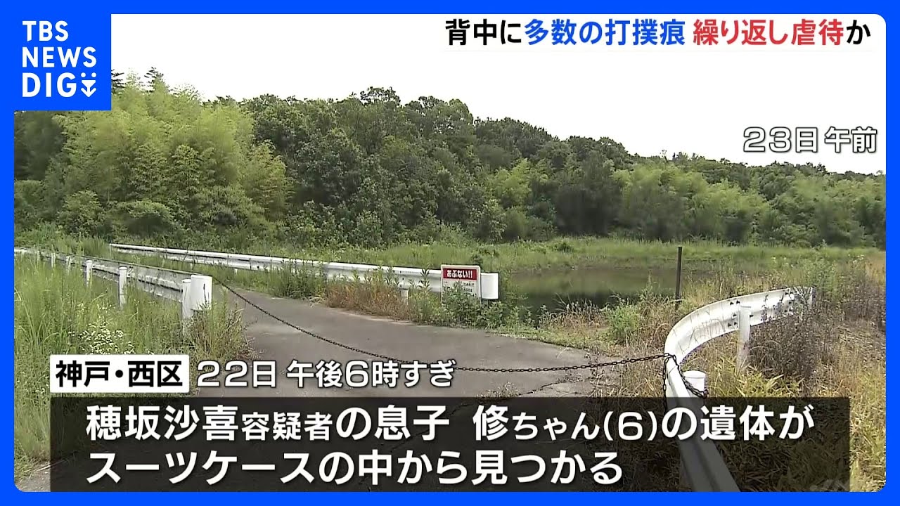 この事件に関連し、おととい、神戸市西区の草むらで穂坂沙喜容疑者の息子で、6歳の修ちゃんの遺体がスーツケースに入れられた状態で見つかりました。司法解剖の結果、修ちゃんの背中には多数の打撲の痕が広がっていて、死因は打撲による外傷性ショックとみられることが分かりました。