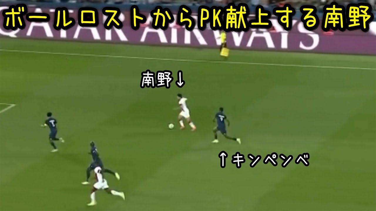ボールロストしてネイマールにPK与える南野拓実