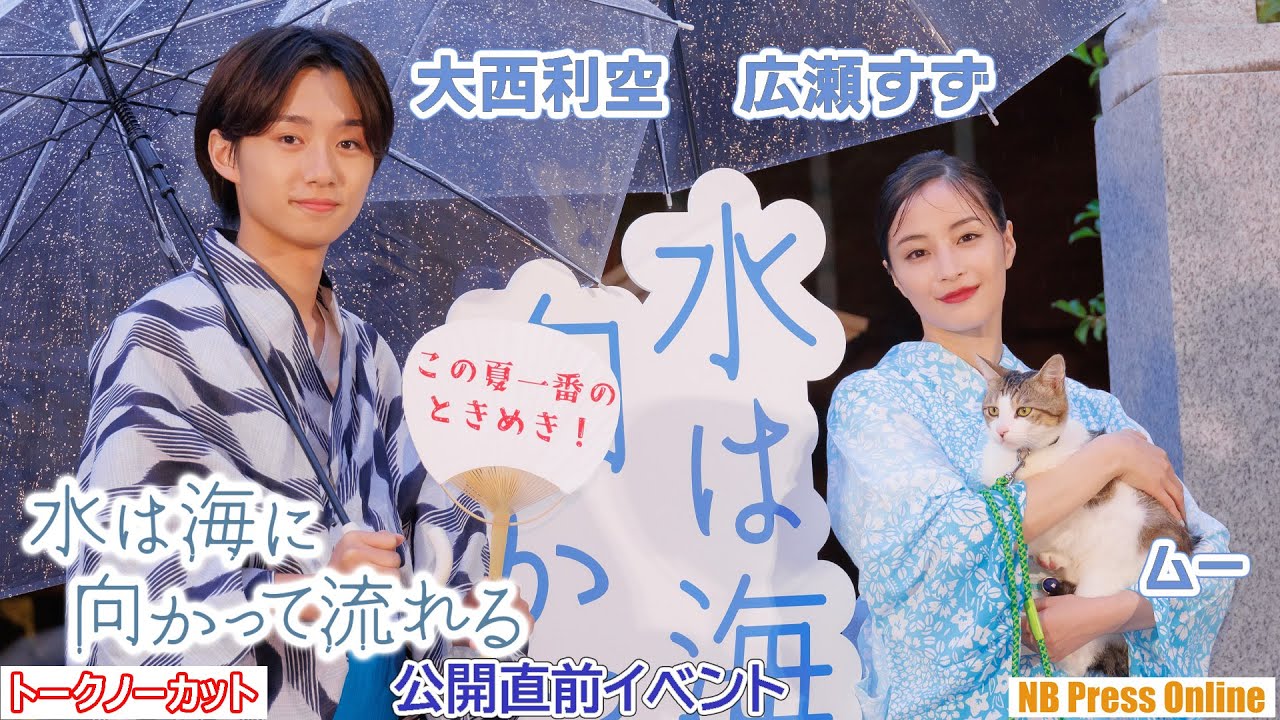 (見どころ頭出しあり)2023年6月6日、赤城神社にて、映画『水は海に向かって流れる』公開直前イベントが行われ、広瀬すず、大西利空、そして、劇中に登場し、広瀬とは1年半ぶりの再会となった猫のムーちゃんもサプライズ登場した。