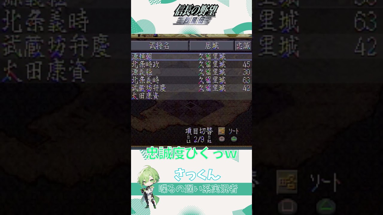 信長の野望・烈風伝パワーアップキット(PS版)より、シナリオ10・諸王の戦いの源家(源頼朝)でプレイ。