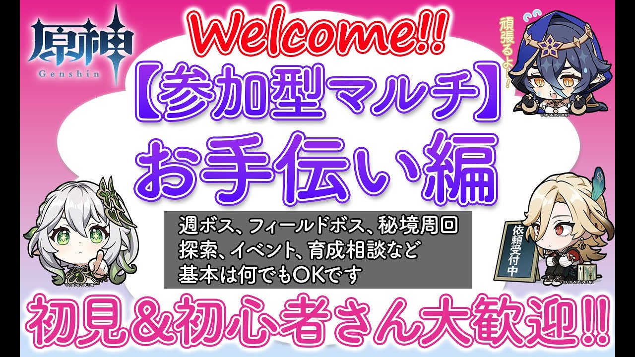 原神のお手伝い配信を行いますので、どなたでもお気軽にご参加ください!