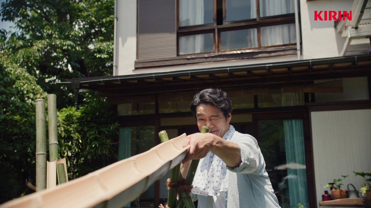 TVCMでは、堤真一さんが竹を割って自作した流しそうめん台で