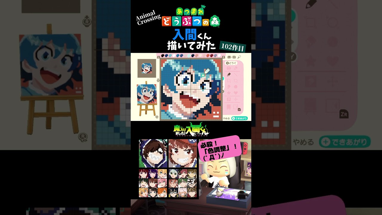 「あつまれどうぶつの森」のマイデザイン機能を使って、色々なアニメイラストをドット絵で描いてます!