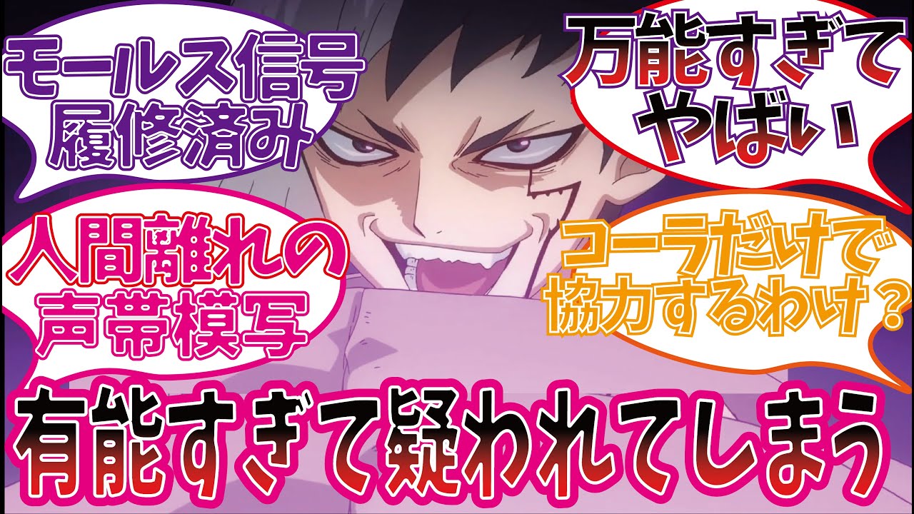 今回は、 都合が良すぎるすぎるあさぎりゲンを楽しむ視聴者の反応集【Dr.STONE】 を紹介しました。#Dr.STONE引用 集英社 稲垣理一郎・Boichi TMS/8PAN #ジャンプ#ジャンプラ#ジョジョの奇妙な冒険#トリコ#ナルト#ボボボーボ・ボーボボ#ワンピース#反応集#暗殺教室#漫画#鬼滅の刃Dr.STONE 龍水ドラゴンボール逃げ上手の若君