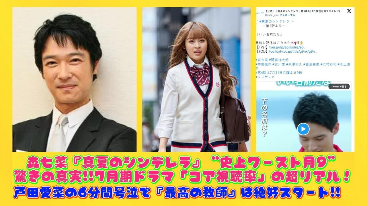 森七菜『真夏のシンデレラ』“史上ワースト月9”驚きの真実!!7月期ドラマ「コア視聴率」の超リアル!芦田愛菜の6分間号泣で『最高の教師』は絶好スタート!! | 日本の芸能ニュース
