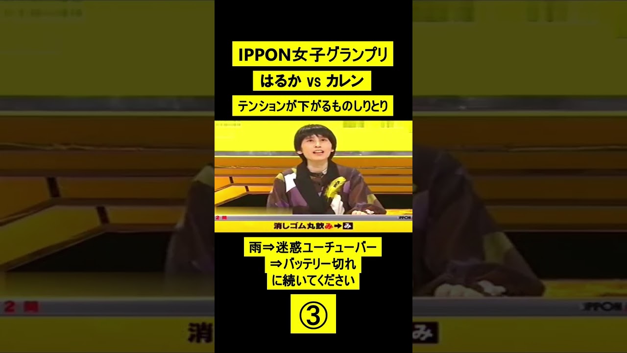 IPPON女子グランプリ ③ はるか VS カレン テンションが下がるものしりとり #short 動画を投稿する励みになるので高評価と チャンネル登録よろしくお願い致します!#ipponグランプリ #松本人志 #ハリセンボン #箕輪はるか #滝沢カレン #大喜利 ipponイッポンお笑いカレンしりとりハリセンボンはるかまっちゃん大喜利女子対決松本人志滝沢滝沢カレン箕輪はるか腹筋崩壊面白