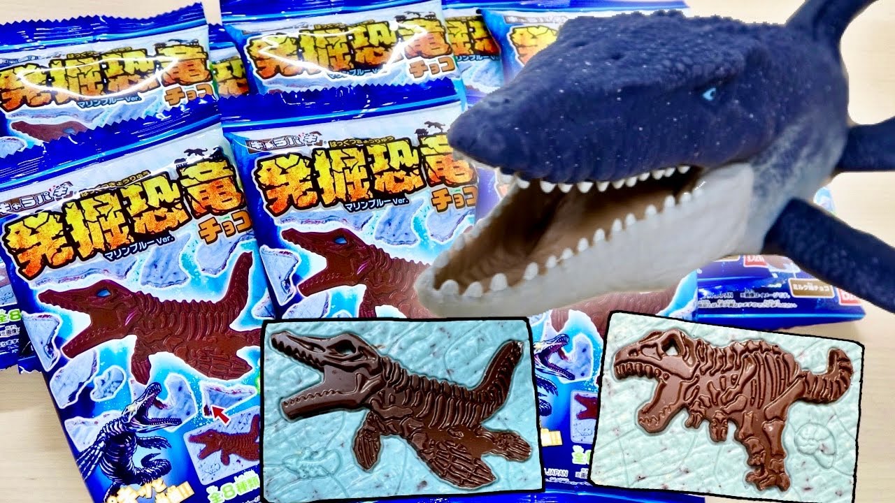 『キャラパキ 期間限定 発掘恐竜チョコ マリンブルーVer. 』期間限定 ラインナップの恐竜は前と同じで 味が変わってマスカット味になってました。