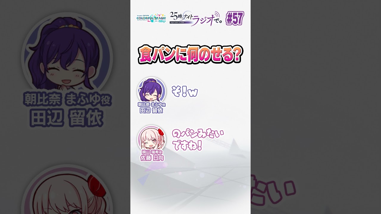 2022年12月25日(日)に公開された『25時、ナイトラジオで。 #57』のショート動画です。 田辺留依さんは食パンに何を乗せるんでしょうか?