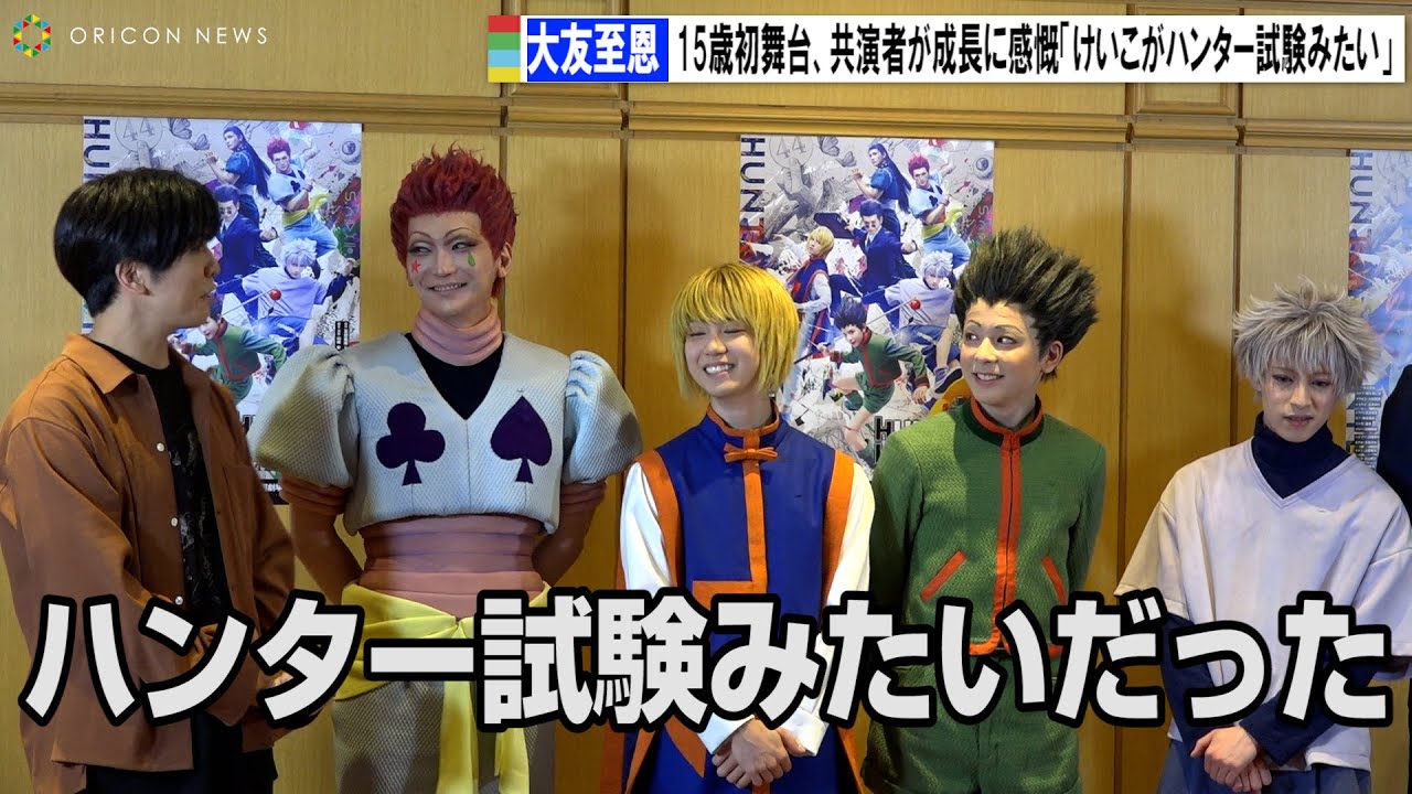 俳優の大友至恩(15)が12日、東京・天王洲銀河劇場で行われた漫画『HUNTER×HUNTER』(ハンター×ハンター)の新作舞台「『HUNTER×HUNTER』THE STAGE」の初日会見に出席した。初日開幕への意気込みを語ると、阿久津仁愛、小越勇輝、近藤頌利、上田堪大、丘山晴己ら共演者からその成長を称えられた。