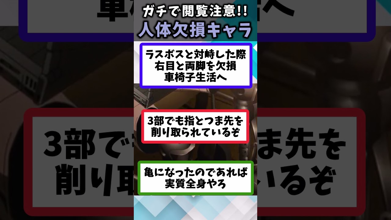 人体欠損したキャラのいるアニメを2chスレ風に紹介します! みんなの印象に残ってる欠損キャラ、コメントで教えてね! #アニメ #アニメ紹介 #ゆっくり解説 #2chスレ #2chアニメスレ #欠損キャラ #ワンピース #鋼の錬金術師 #ジョジョの奇妙な冒険 #エルフェンリート #結城友奈は勇者である #どろろ 2chアニメスレ2chスレアニメアニメ紹介エルフェンリートジョジョの奇妙な冒険とろろゆっくり解説ワンピース欠損キャラ結城友奈は勇者である結城友奈は勇者である ちゅるっと!鋼の錬金術師