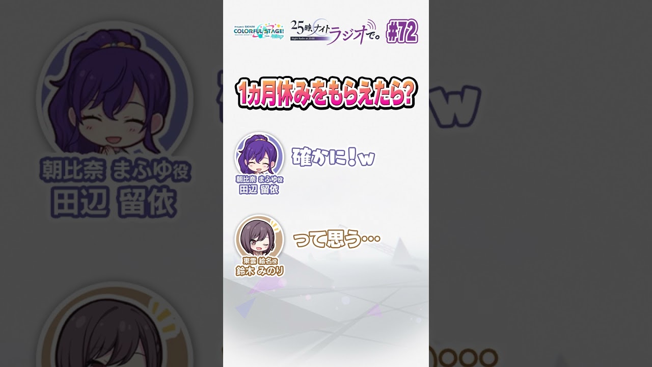 2023年7月23日(日)に公開された『25時、ナイトラジオで。 #72』のショート動画です。1ヶ月休みをもらえたら何をしますか?
