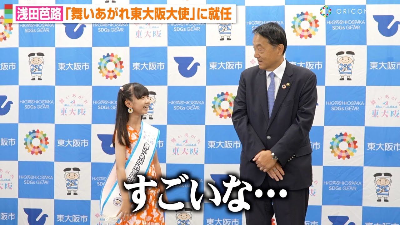 NHK朝の連続テレビ小説『舞いあがれ!』で福原遥演じる主人公・舞の幼少期役を演じた子役の浅田芭路(10)が10月1日、東大阪市役所にて行われた『舞いあがれ東大阪大使』就任式に出席した。
