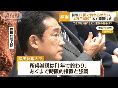 岸田総理は、所得税などの減税について、1年が軸になるとの認識を改めて示しました。つまり、来年の6月に一度だけ減税して、おしまいということです。