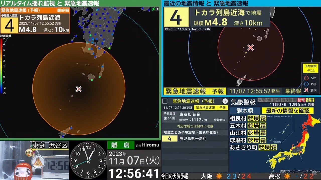 地震速報ライブ(短縮URL) https://bit.ly/3c7YQ1R0:00 切り抜きアーカイブ 0:02 緊急地震速報 (予報) 1:30 震度速報 2:31 震源情報 (津波の心配なし) 3:16 各地の震度情報 (詳細)トカラ列島 震度3 M4.1 深さ10km 2023/11/7 12:55ごろ #緊急地震速報 #津波 #地震 #ライブカメラ #気象庁 23区5弱5強6弱6強EarthquakejdqJMAJQuakekiwiLIVENewsPGATsunamiアーカイブいまごろつなみトカラニュースプレートマグニチュードみやすいモニタゆれライブライブ地震速報三陸二十三区付近仙台北海道台風地方地震地震 ライブ地震ライブ地震ライブ配信中地震情報地震最新情報地震速報地震速報 ライブ大津波大津波警報宮城小笠原岩手巨大強震強震モニタ情報振動揺れ放送日本最大最近棒読み気象庁沖縄津波津波情報津波注意津波注意報津波警報海外海岸深さ深層深発災害琴葉発表監視福島緊急緊急地震速報緊急地震速報ライブ群発自作自然見やすい規模観測計測誘発読み上げ近海通り速報連発進路遠地配信開発震央震度震度3震度4震度7震源震源情報青森